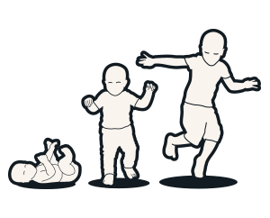 I bambini in questa fase ora corrono con sicurezza, saltando, iniziando a fermarsi all’improvviso con facilità. Tirano i primi calci al pallone e giocano, ballano e saltano la corda. I loro movimenti sono più veloci e più coordinati. Stanno diventando socialmente consapevoli, fanno amicizia e giocano con i loro coetanei. Le loro menti stanno crescendo mentre imparano a conoscere il mondo che li circonda e diventano più consapevoli dei propri movimenti.