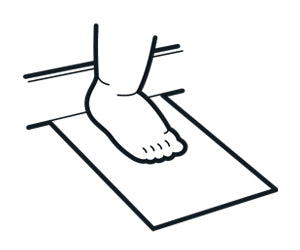 Metti il bambino con la schiena al muro e fagli posizionare il piede sul foglio di carta. Il piede dovrà toccare la parete.